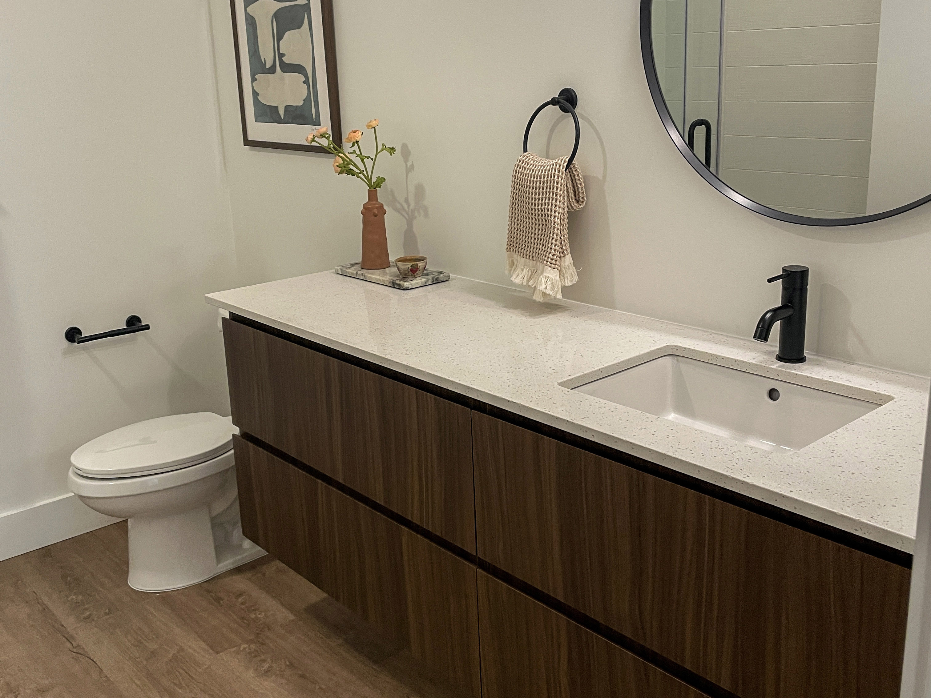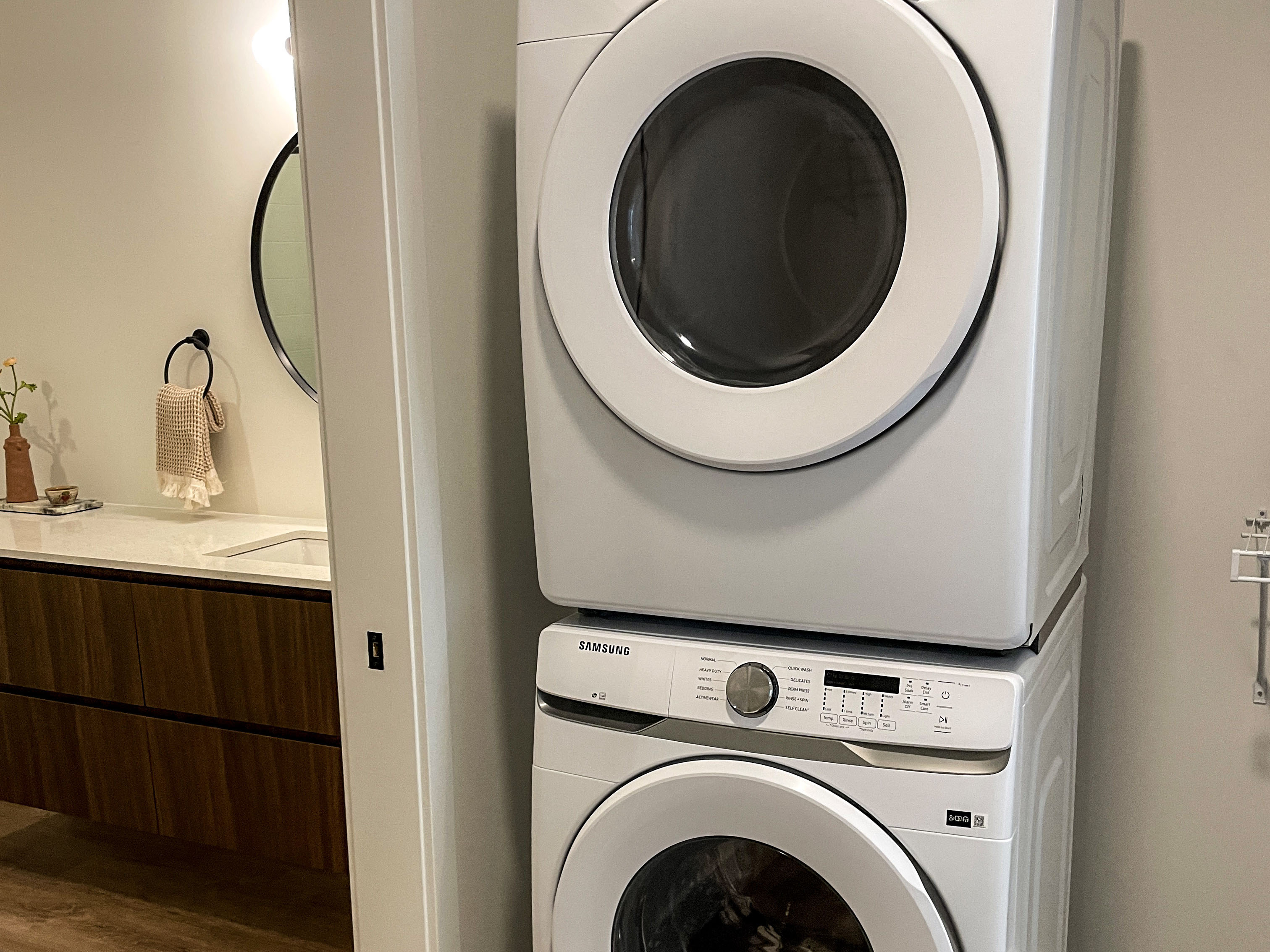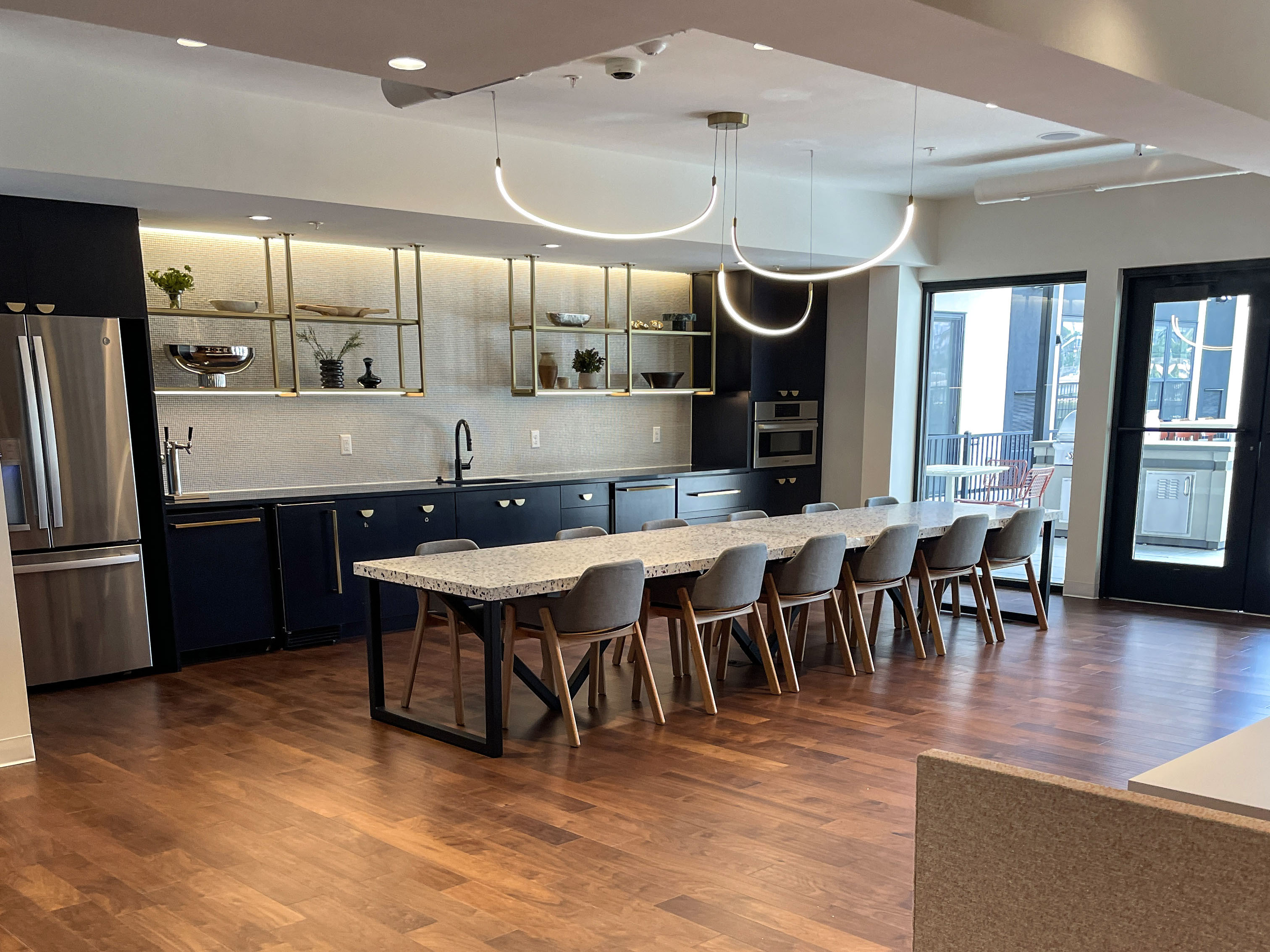 Live in a bright modern unit featuring huge windows and high-end finishes, a chef-style kitchens with quartz counters + stainless appliances, and premiere access to a rooftop deck with fire pits and epic views of the Front Range.