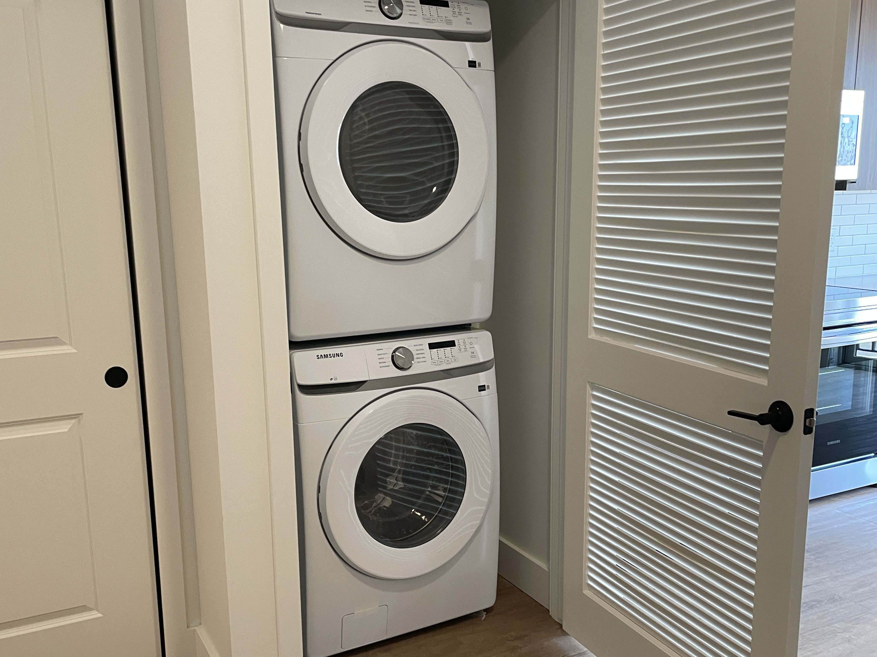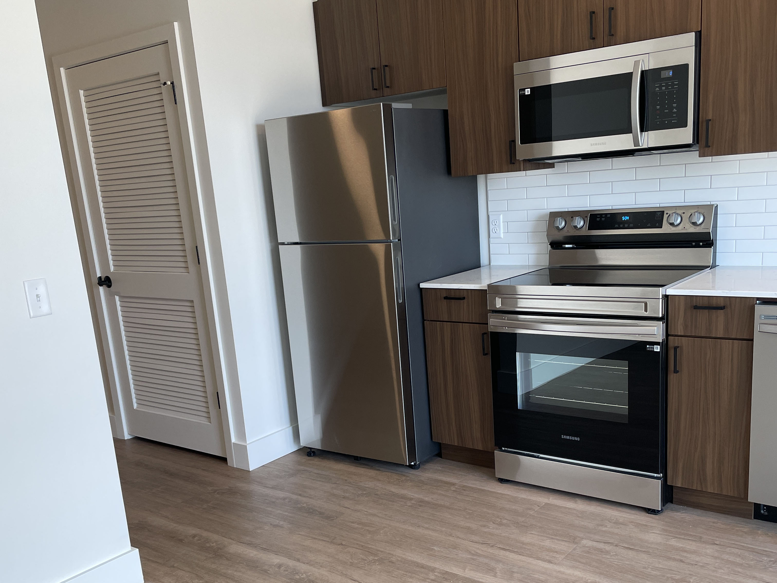 Live in a bright modern unit featuring huge windows and high-end finishes, a chef-style kitchens with quartz counters + stainless appliances, and premiere access to a rooftop deck with fire pits and epic views of the Front Range.