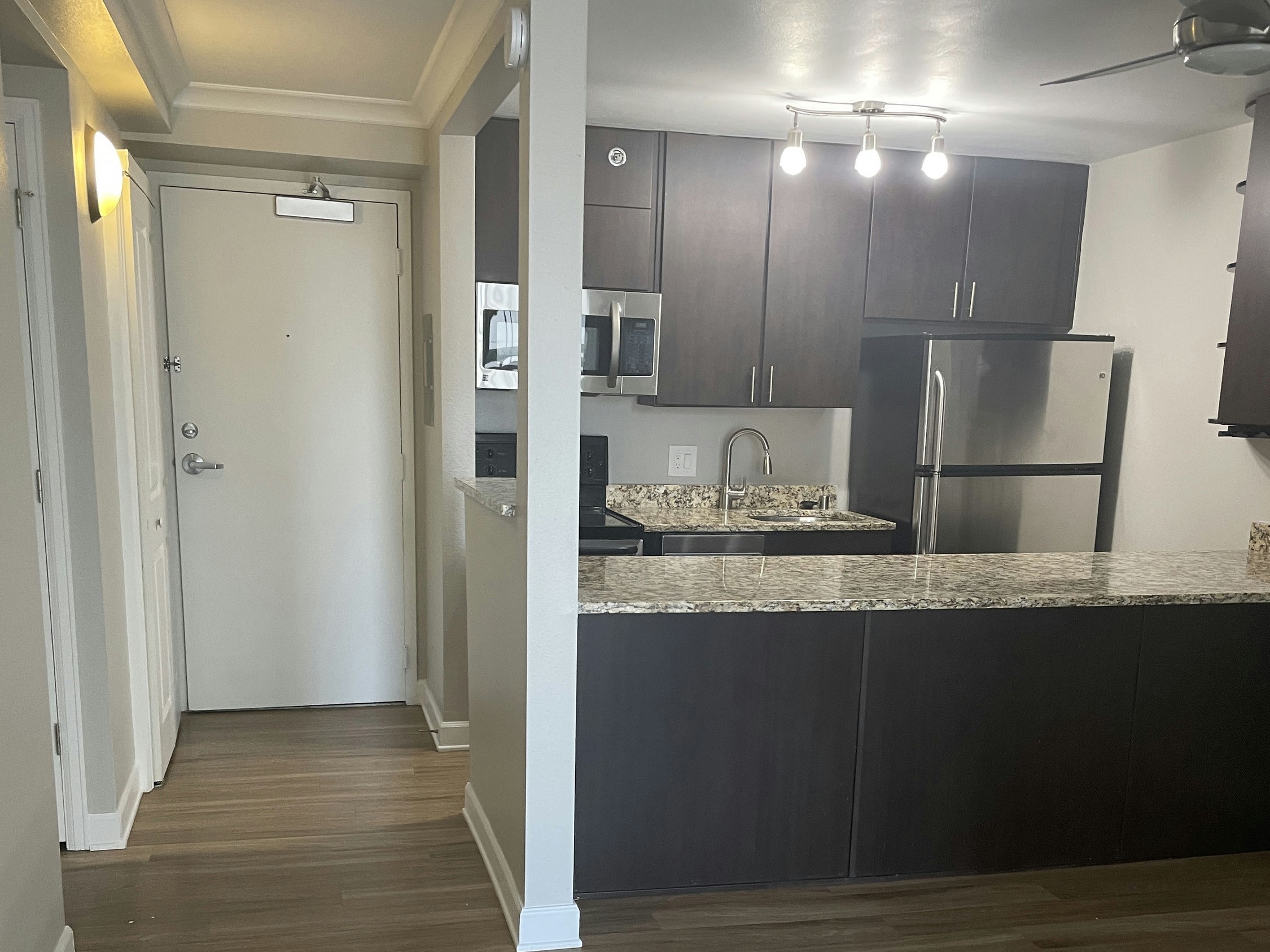 You'll love this apartment because of its huge windows, mountain and skyline views (with incredible sunsets), modern kitchen with granite counters + stainless steel appliances, in-unit laundry, a private balcony for morning coffee or late night hangs, & central heat & AC to keep it crisp year-round.