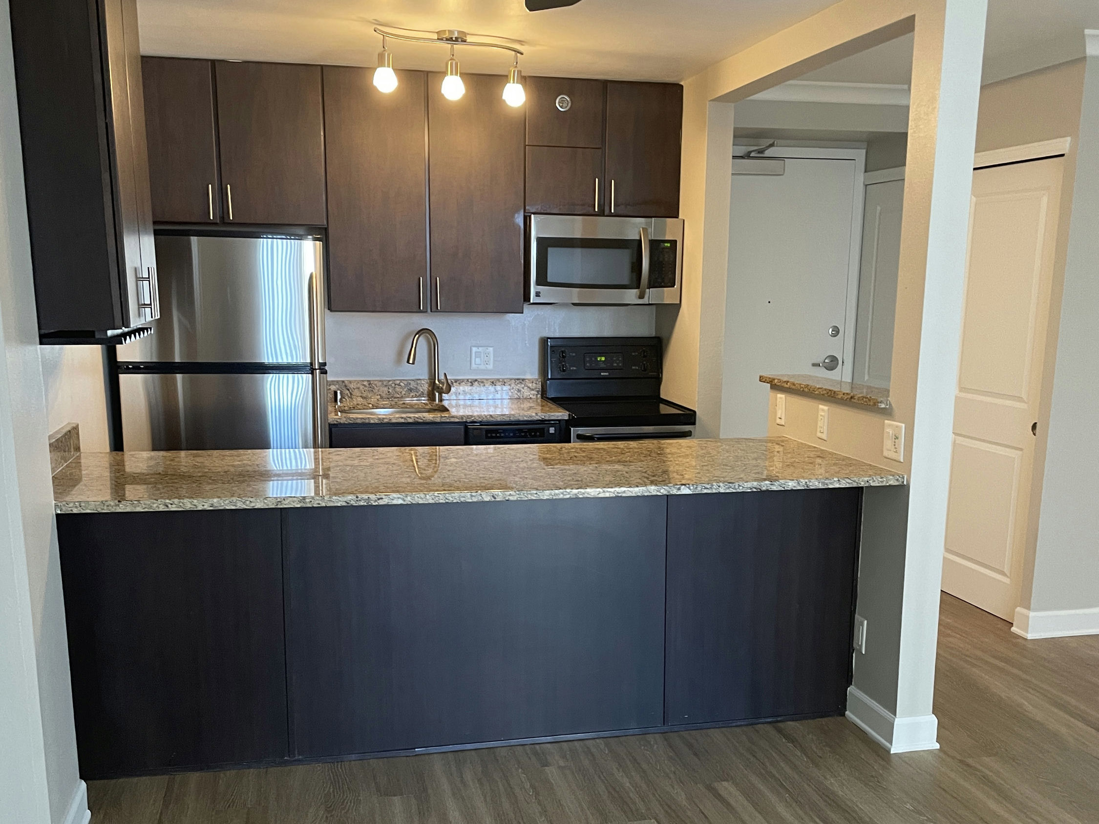 You'll love this apartment because of its huge windows, mountain and skyline views (with incredible sunsets), modern kitchen with granite counters + stainless steel appliances, in-unit laundry, a private balcony for morning coffee or late night hangs, & central heat & AC to keep it crisp year-round.