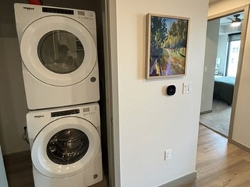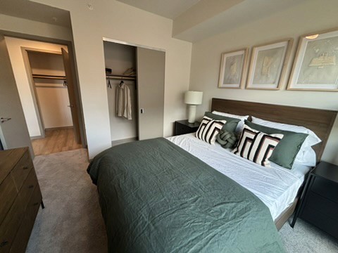 This high-end 1-Bed includes, in-unit laundry, stainless steel appliances & quartz countertops, smart home technology, & floor-to-ceiling windows with mountain views.