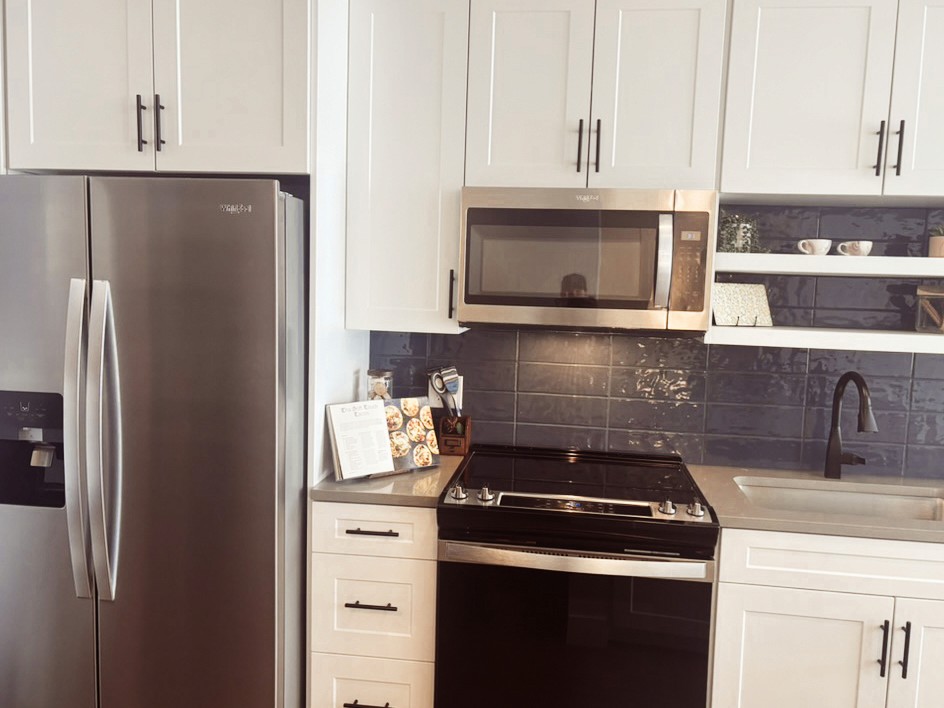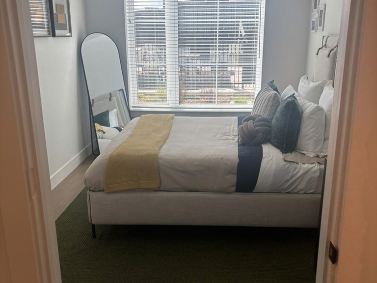 This boutique apartment features a gourmet kitchen with stainless steel appliances and quartz countertops, soft-close cabinetry and undermounted sinks, smart home technology with keyless entry/smart thermostats, designer color schemes, elegant finishes, & in-unit laundry.